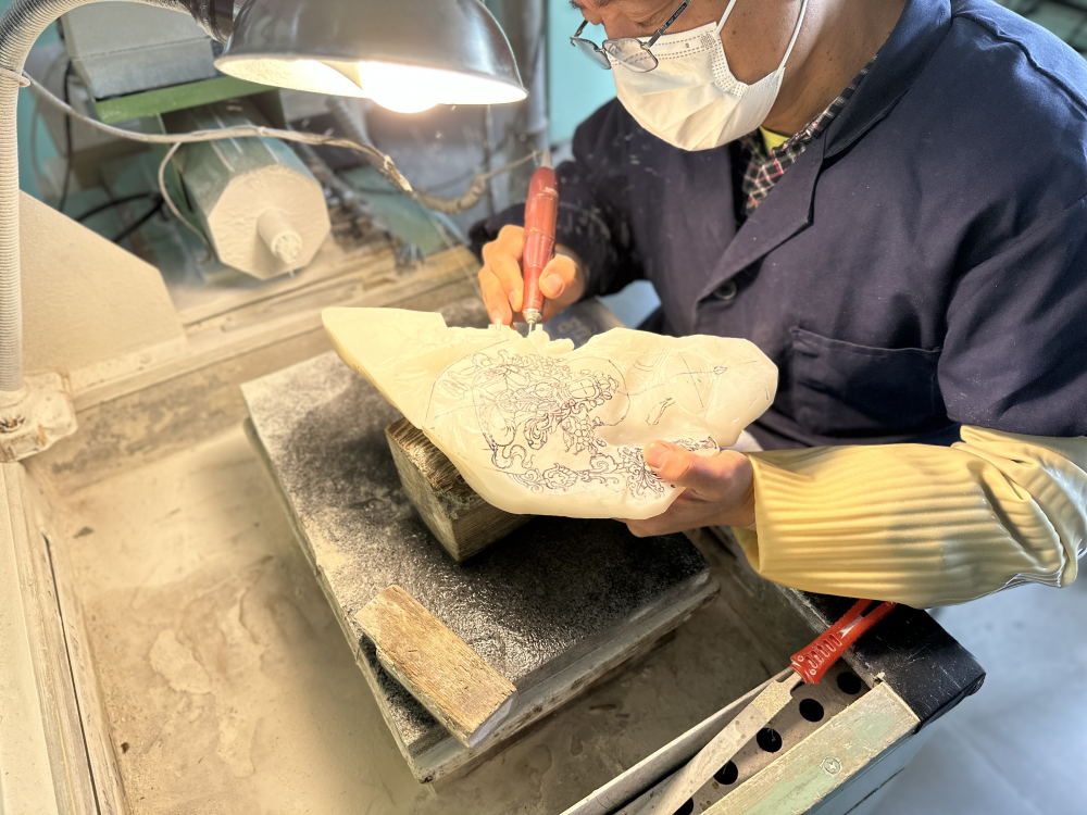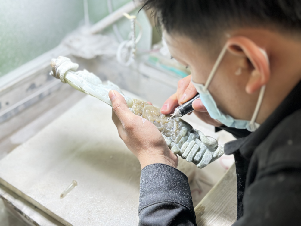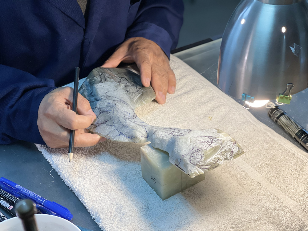 “玉是磨出來的。”張鐵成的一句話,點出了玉雕技藝的一大特點——費時。