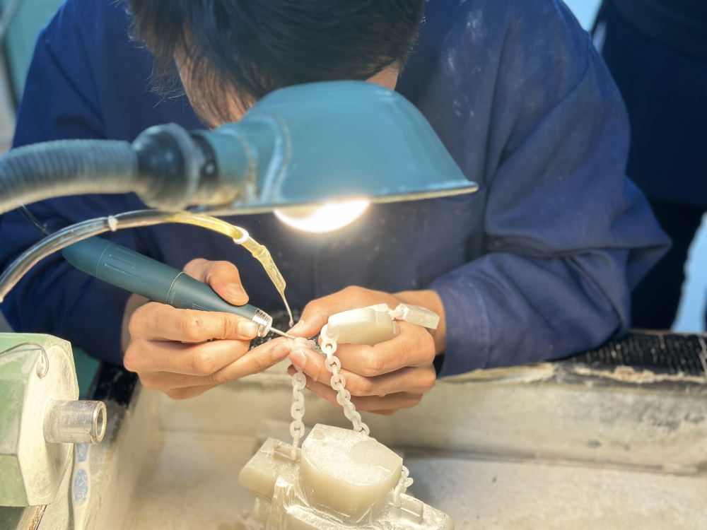 張鐵成在手藝上專撿“硬骨頭”啃,比如“鏈子活”,即從器物本身取材琢製縷縷相連的小圈組成鏈條,是皇家玉雕絕技之一,往往要求用大料雕琢,一旦失誤,整料作廢,損失巨大。