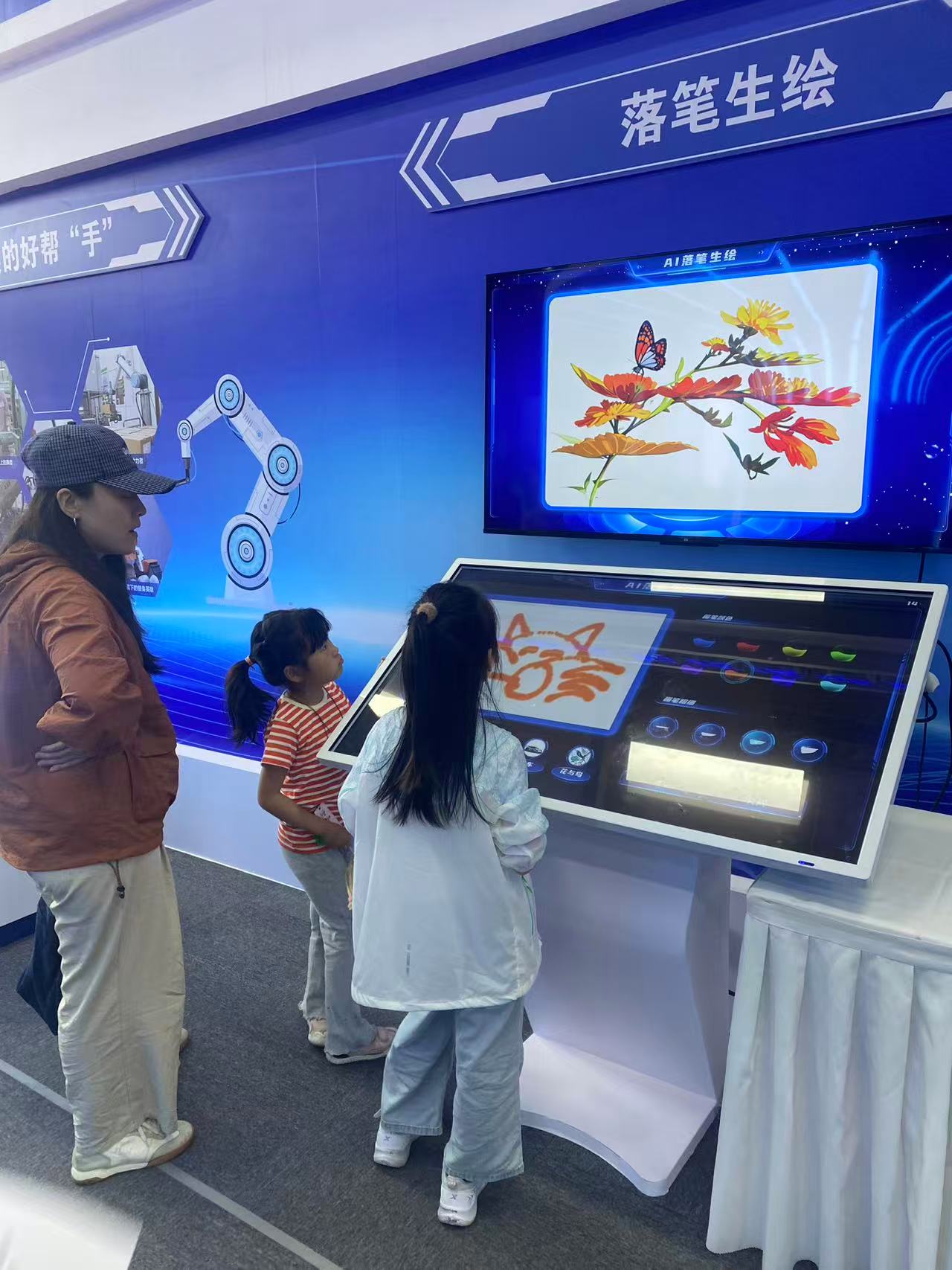 2025通州區科技活動周上,小朋友們體驗“落筆生繪”與AI協同創作繪畫。