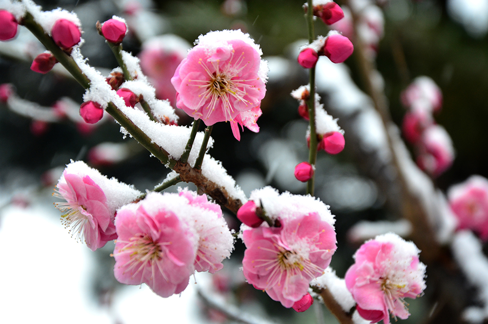 部分心急的梅花已經初露嬌顏,俏麗多姿更顯春意。中山公園梅園內100餘株梅花開放。