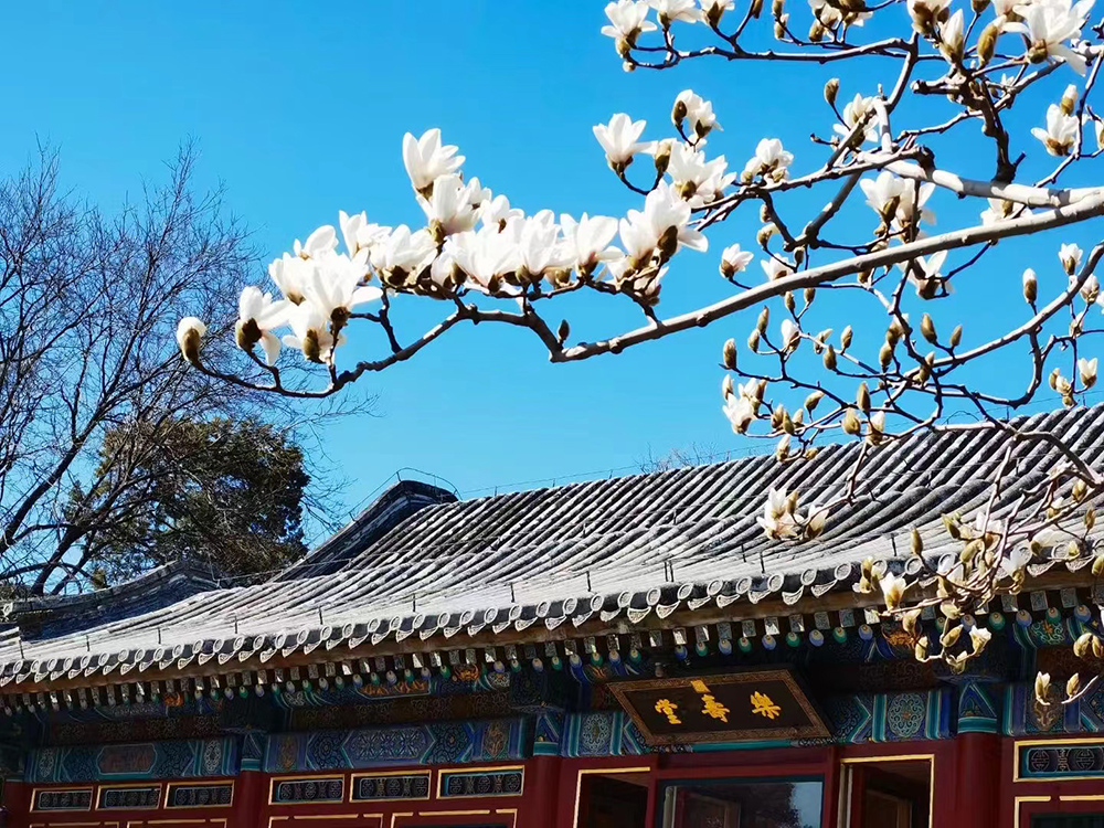 玉蘭隨著春意漸濃逐步綻蕾,頤和園玉蘭花的栽培曆史已超過兩百五十年,每到玉蘭花開,步入樂壽堂便是滿院芬芳。