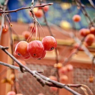 雪落智化寺 海棠別樣紅