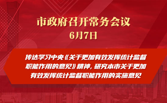 市政府常務會議:傳達學習中央《關於更加有效發揮統計監督職能作用的意見》精神,研究本市關於更加有效發揮統計監督職能作用的實施意見