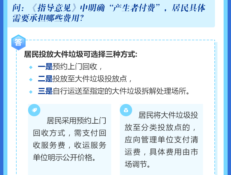 《關於加強本市大件垃圾管理的指導意見》中明確“產生者付費” 居民具體需要承擔哪些費用?