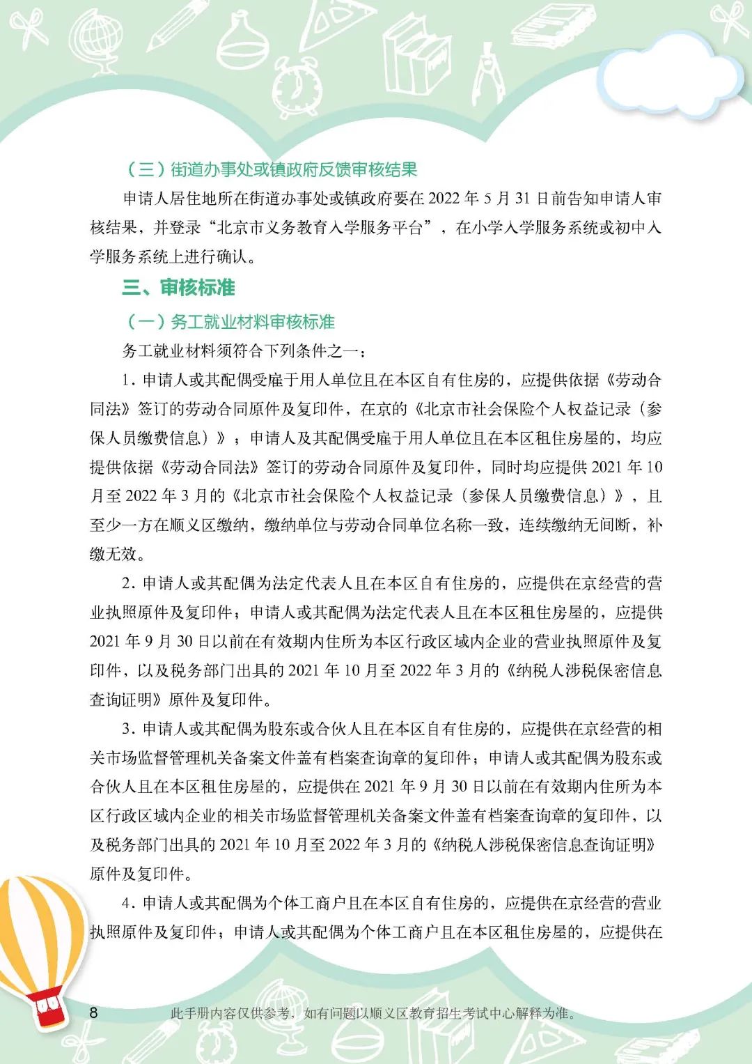 2022年非本市戶籍適齡兒童少年在順義區接受義務教育材料審核實施細則