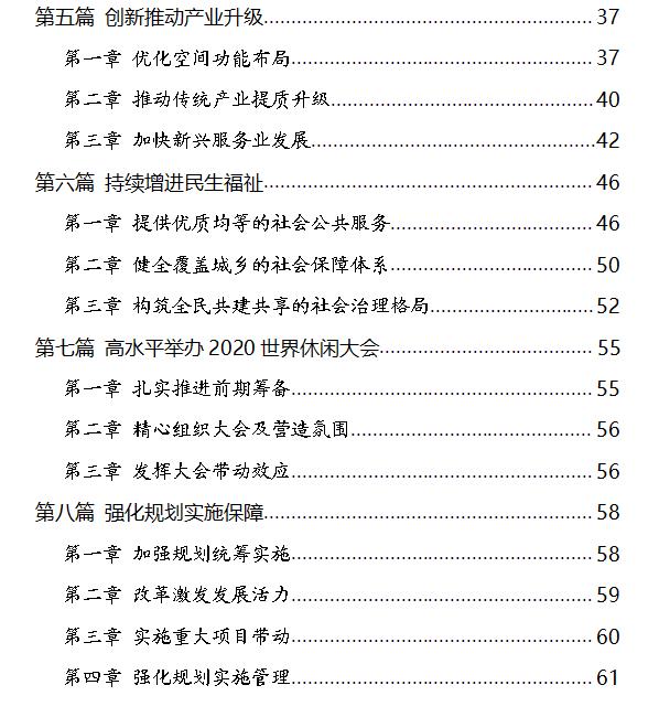 大力發展休閑旅遊業。以舉辦2020世界休閑大會為著力點,打造“東方桃花源·世界休閑穀”區域品牌。依托區域優質資源,構建山水休閑、運動休閑、養生休閑、音樂休閑、文化休閑、農業休閑等主題空間,形成“一核·一帶·五區”的旅遊發展新格局。加快商務會展、高端酒店等設施建設,促進現有景區旅遊設施改造升級,推進環淺山登山步道建設,提升旅遊綜合服務能力。創新休閑模式,豐富產品體係,重點開發休閑新業態,積極引進大型綜合休閑娛樂項目,全力推動旅遊由觀光型向休閑型、數量向質量、過境地向目的地轉變。