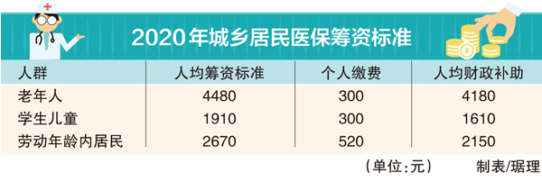據了解,為保證本市城鄉居民能夠共享改革發展成果,2020年,人均財政補助增加1000元,老年人、學生兒童個人繳費增加120元,勞動年齡內居民個人繳費增加220元。本市將通過持續加大財政投入,進一步提升對居民醫保的運行保障力度。