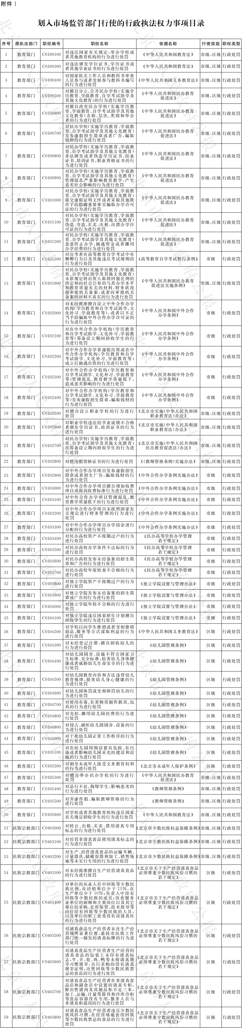 (一)將教育部門行使的全部行政處罰權、民族宗教部門行使的民族方麵的全部行政處罰權劃入市場監管部門集中行使,具體執法工作由市場監管綜合執法隊伍承擔。
