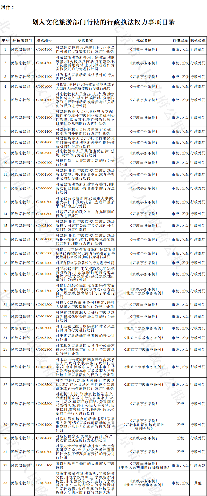 2.劃入文化旅遊部門行使的行政執法權力事項目錄