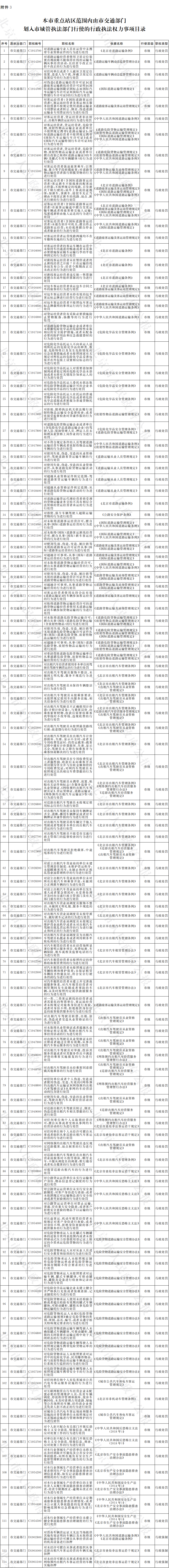 3.本市重點站區範圍內由市交通部門劃入市城管執法部門行使的行政執法權力事項目錄