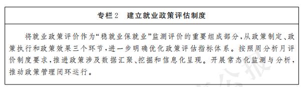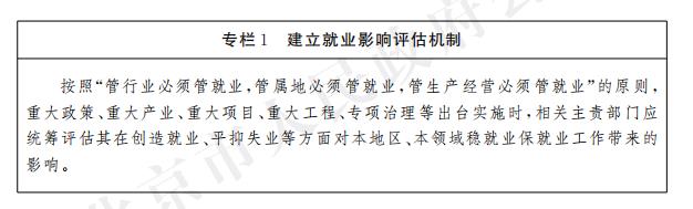 健全促進就業責任體係。堅持把完成就業任務作為硬約束,夯實各級、各部門和全社會促進就業共同責任,各區政府切實履行促進就業的主體責任,相關部門強化行業主管責任,企業主動承擔社會責任,充分發揮就業工作領導小組統籌協調作用,健全就業工作體係運行機製,建立就業影響評估機製和就業政策評估製度,凝聚全市就業工作強大合力。