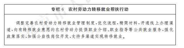 助力鄉村振興戰略促進農村勞動力就業。提高農民就業和社會保障水平,實施“六個一批”就業幫扶措施,引導參加企業職工養老保險,開展農村勞動力轉移就業幫扶行動,促進農村勞動力實現高質量就業。完善農民工就業培訓政策,加大家政服務、養老護理等從業人員培訓力度,加強就業服務和權益維護,提升就業質量。鞏固拓展脫貧攻堅成果同鄉村振興有效銜接,持續加強結對幫扶和勞務協作,推進家政服務輸出基地建設,發揮“務工人員之家”作用,進一步做好脫貧人口、邊緣易致貧人口穩崗就業工作。