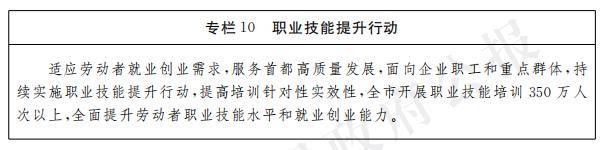 適應平台經濟、共享經濟等新業態發展,大力拓寬靈活就業渠道。堅持包容審慎監管,研究製定支持和規範發展新就業形態政策措施,支持勞動者通過新業態新模式就業。實施支持靈活就業發展計劃,支持個體經營、非全日製以及新就業形態等多渠道靈活就業。發揮低齡退休專家、醫生、工程師等人員技術技能特長,更好地服務首都高質量發展。取消公共就業服務機構求職登記勞動年齡限製,超過勞動年齡的人群均可以享受公共就業服務。