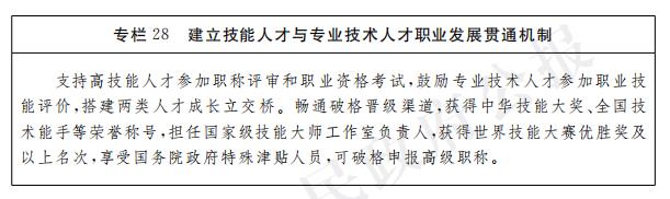 創新技能人才評價製度。健全以職業能力為導向,以工作業績為重點,注重工匠精神培育和職業道德養成的技能人才評價體係。建立和完善與國家職業資格製度相銜接、與終身職業技能培訓製度相適應的職業技能等級製度,推進市場化職業技能等級認定,由經人力資源社會保障部門備案公布的用人單位和社會培訓評價組織對勞動者的職業技能水平進行考核評價,使評價更加貼近企業需求和勞動者技能水平提升需要。支持和鼓勵企業拓寬培訓、考核、使用、激勵相結合的人才成長通道,改變技能人才職業等級天花板現象。到2025年,實現新增取得技能人員職業資格證書或職業技能等級證書人數30萬人,取得高級工以上職業資格證書或職業技能等級證書人數7.5萬人。