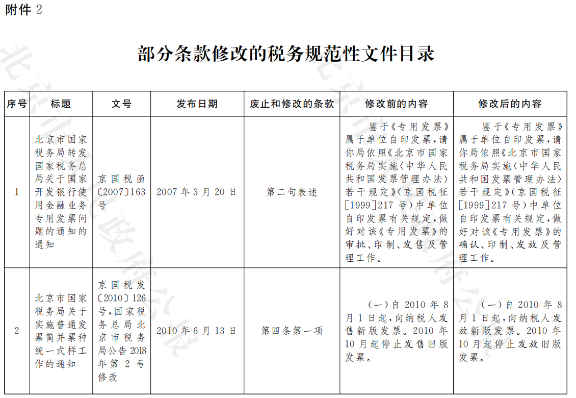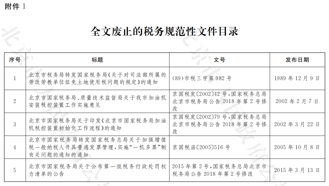 根據《稅務規範性文件製定管理辦法》有關規定,國家稅務總局北京市稅務局對稅務規範性文件進行了清理。現將《全文廢止的稅務規範性文件目錄》和《部分條款修改的稅務規範性文件目錄》予以公布。