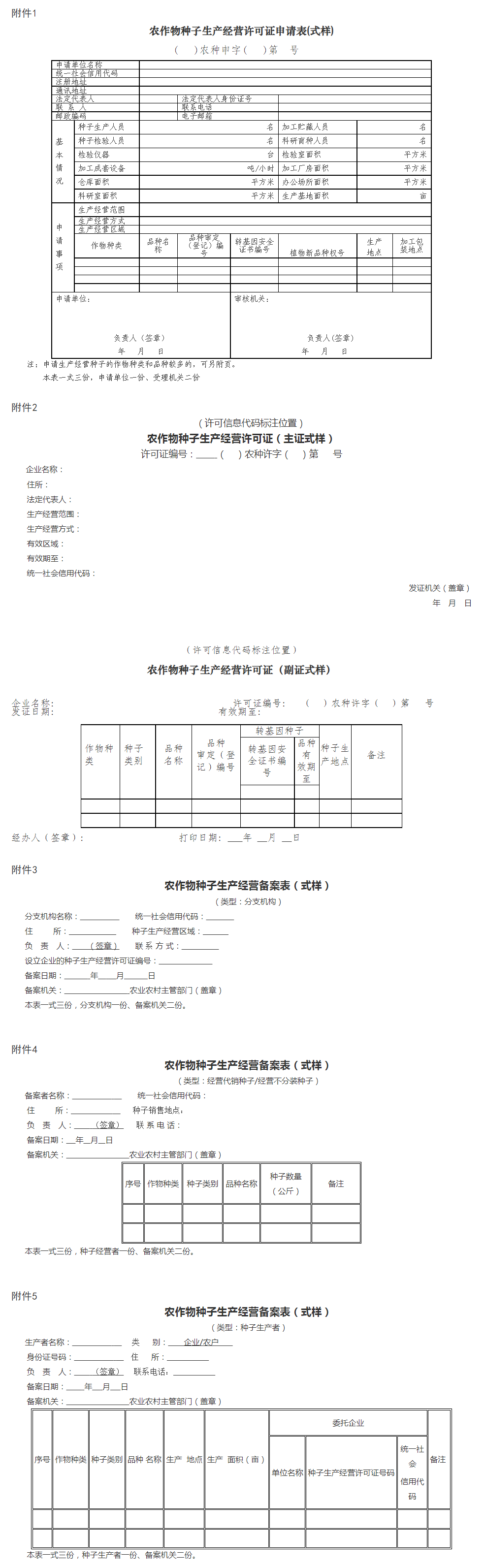 附件:1.農作物種子生產經營許可證申請表(式樣)
