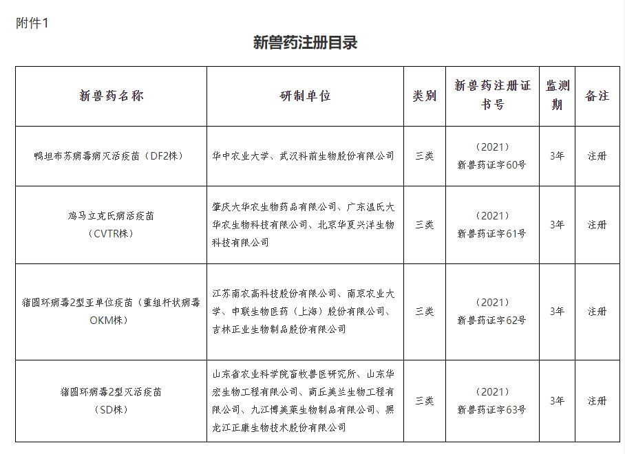 附件:1.新獸藥注冊目錄